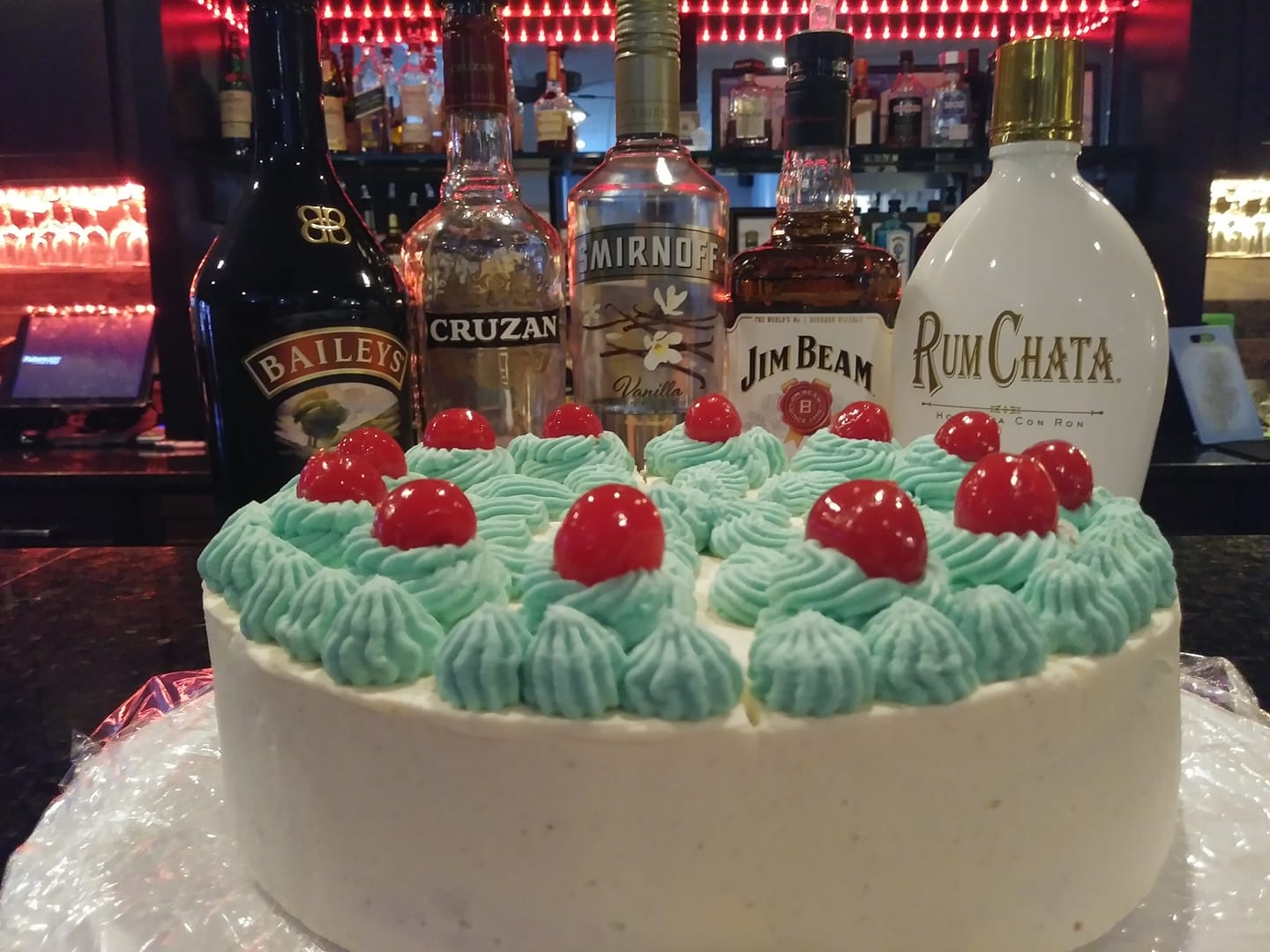 Booze Hag Made with bourbon, Rum Chata, vanilla vodka and Baileys Irish Cream with hints of cinnamon and topped with 151 cherries